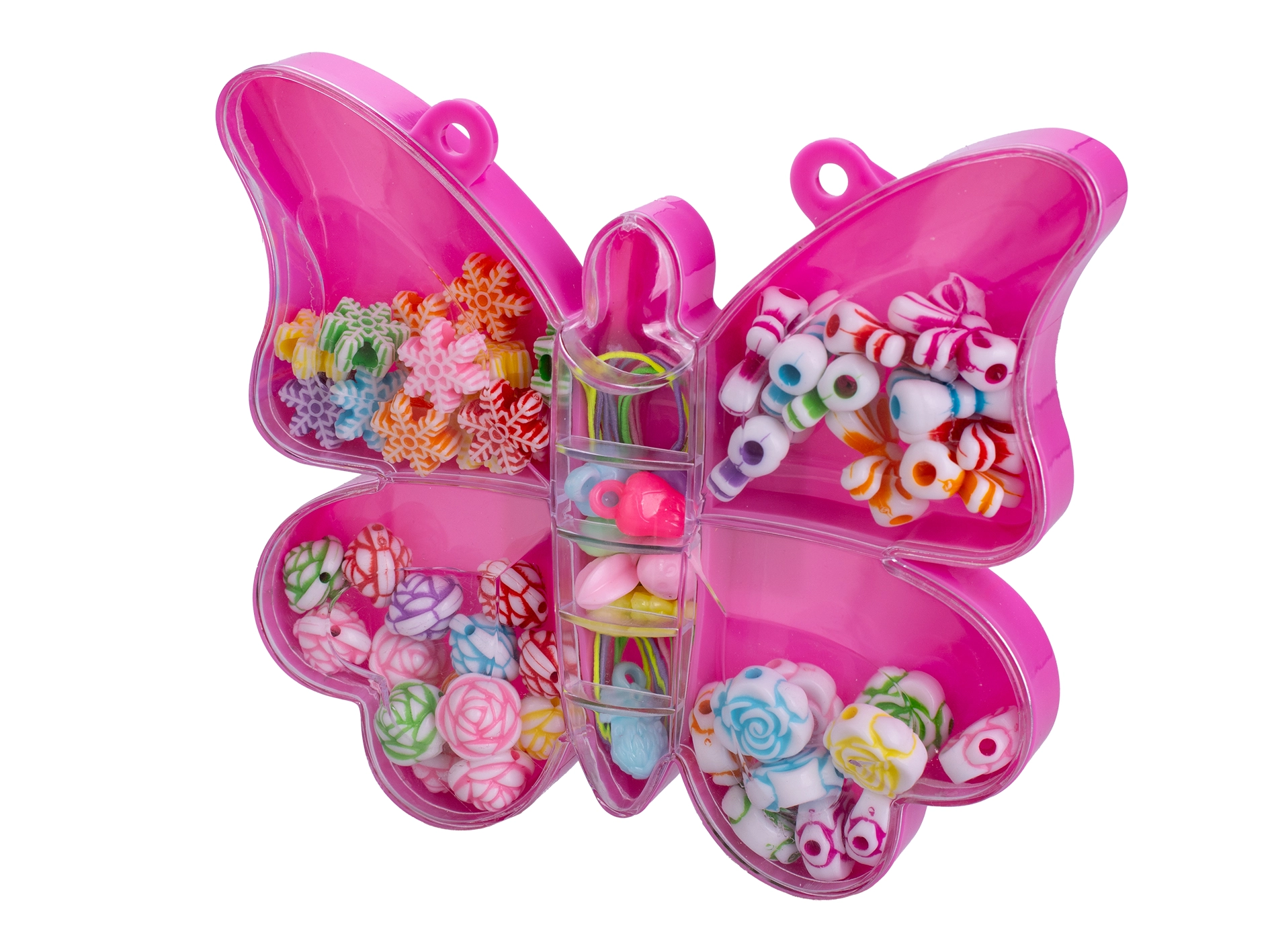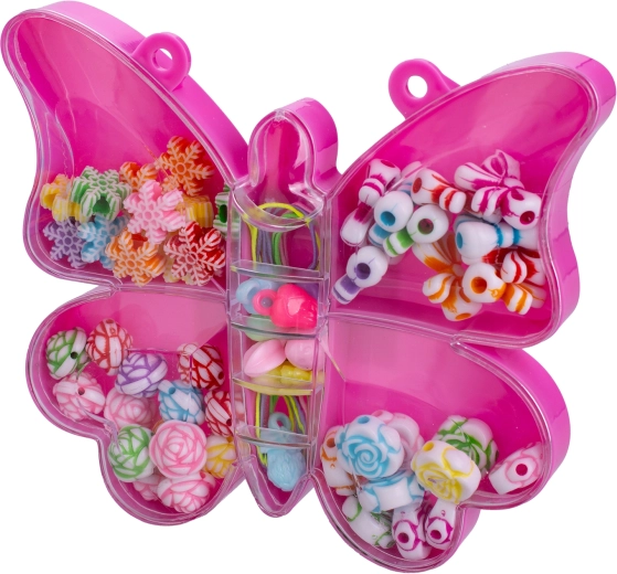 Descoperiți setul distractiv de mărgele de înșirat, cu care copiii de la 3 ani își pot crea propriile bijuterii și decorațiuni. Setul oferă 20 de mărgele colorate în forme de fluturi și scoici, păstrate într-o cutie practică pentru transport ușor. Activitatea susține motricitatea fină, răbdarea și creativitatea.