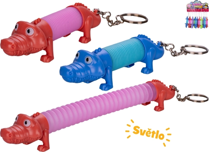 Un breloc amuzant și practic în formă de crocodil, care pornește înainte după armare și se aprinde. Mișcare interactivă, lumină pe baterii și dimensiuni compacte îl fac un accesoriu grozav pentru copii și adulți.