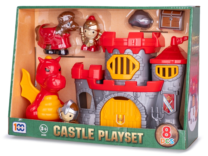 Jucăria este fabricată din plastic de calitate, ceea ce asigură întreținere ușoară și rezistență la joaca de zi cu zi. Culorile vii și elementele tematice îi poartă pe copii într-o lume a magiei, unde își pot crea propriile aventuri cu cavaleri și dragoni.