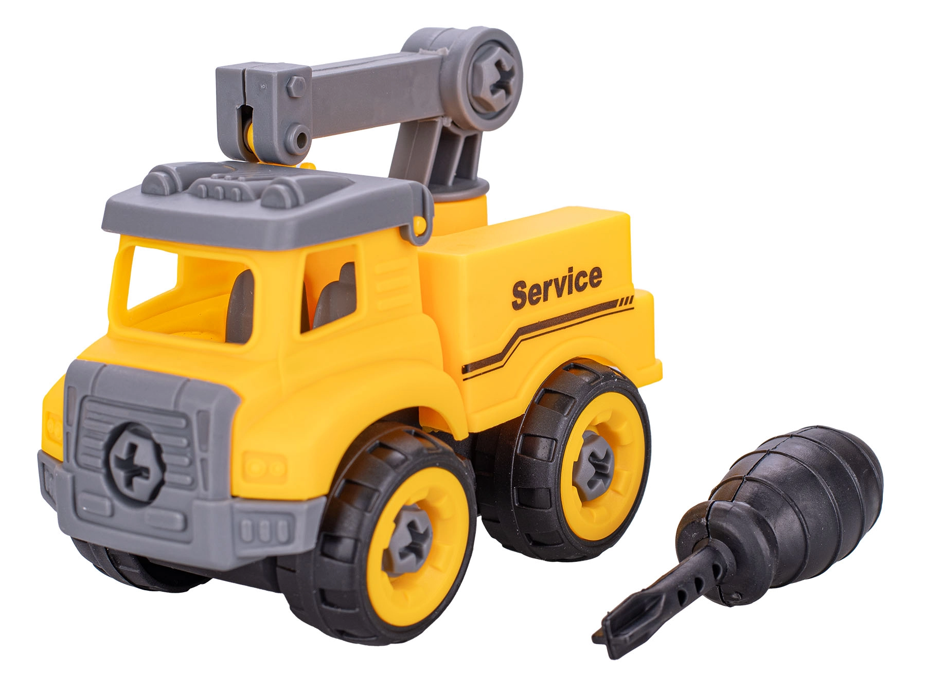 Alegeți dintre utilajele de construcții preferate: betonieră, basculantă, excavator sau macara. Fiecare pachet conține 1 vehicul și 1 șurubelniță, totul într-o cutie deschisă pentru a facilita alegerea modelului dorit. Jucăria este fabricată din plastic de calitate și este potrivită pentru copiii de la 3 ani.