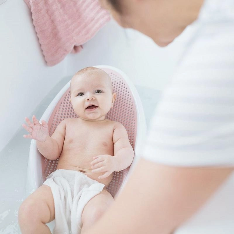Suportul de baie ANGELCARE Light Pink este conceput pentru a oferi bebelușului o susținere sigură și părinților mai multă libertate a mâinilor în timpul băii. Înclinarea ergonomică menține capul deasupra apei, în timp ce plasa fină Soft-Touch este plăcută pentru pielea sensibilă și permite circulația apei calde pentru un confort sporit.