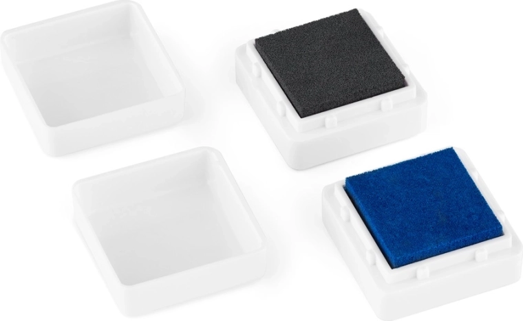 Cerneala este concepută pentru cei mai mici: îndeplinește cerințele pentru produse destinate copiilor până la 3 ani și este delicată cu pielea nou-născuților. Datorită capace-lor etanșe, tampoanele sunt practice de transportat și protejate împotriva uscării.