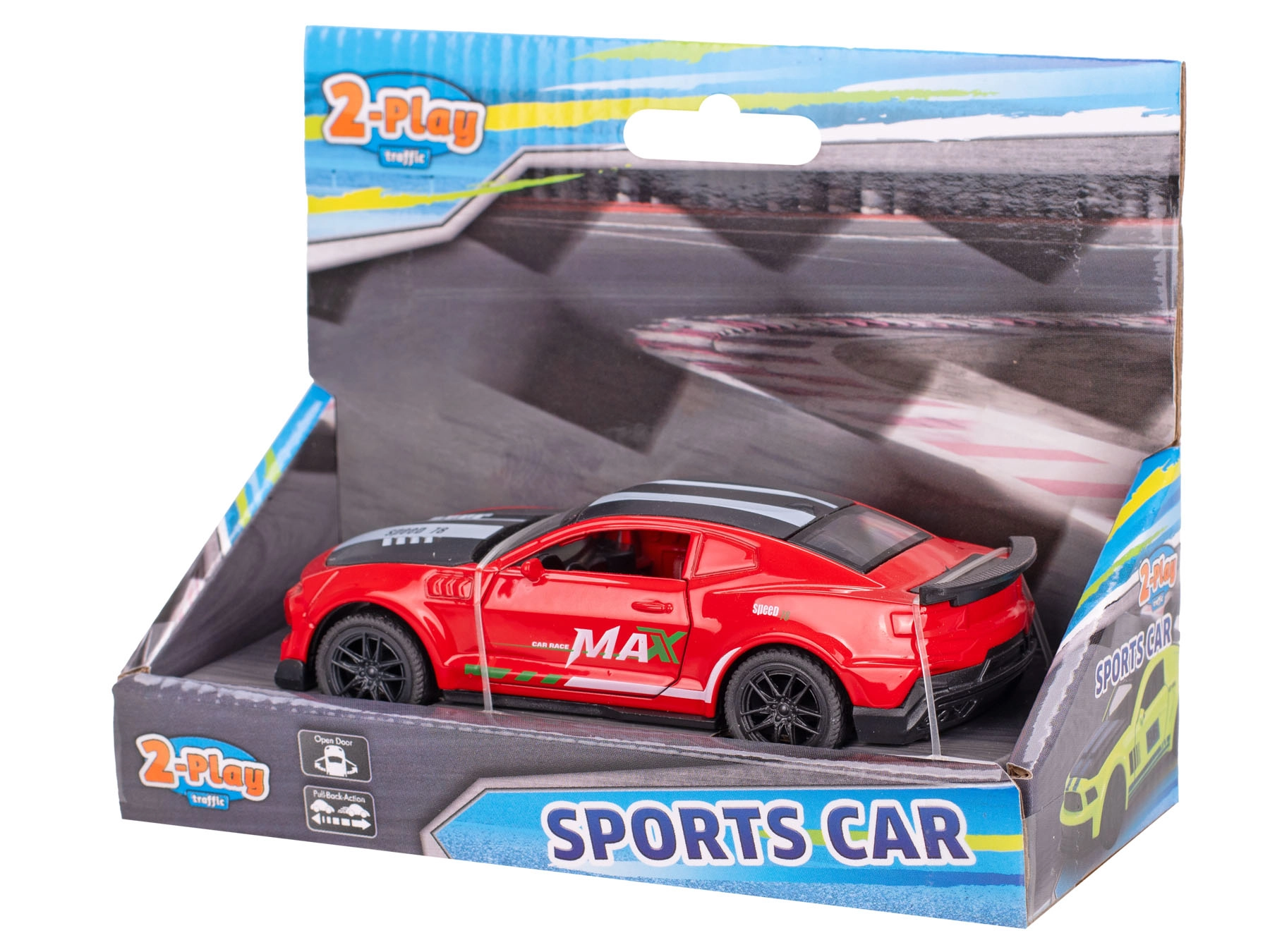 Mașina sport 2-Play Traffic cu lungimea de 11,5 cm impresionează prin design realist, execuție de calitate din metal și plastic și mecanism pull-back, care asigură un start rapid înainte după întindere. Jucăria ideală pentru micii șoferi, care aduce distracție și dezvoltă motricitatea fină.