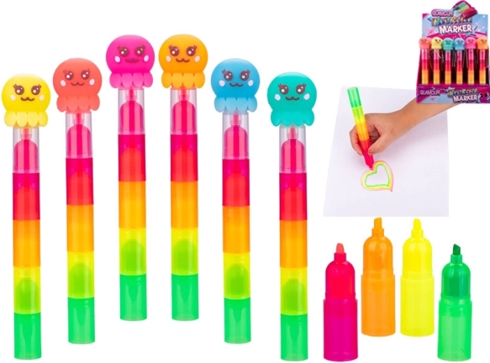 Descoperă o modalitate distractivă și practică de evidențiere. Acest evidențiator cu cinci culori în formă de caracatiță combină portocaliu, roz, albastru, verde, galben și roșu într-un singur corp, astfel încât poți schimba rapid culorile fără a înlocui instrumentul. Datorită lungimii de 18 cm și diametrului de 3 cm, se ține perfect în mână și este ideal pentru utilizarea zilnică.