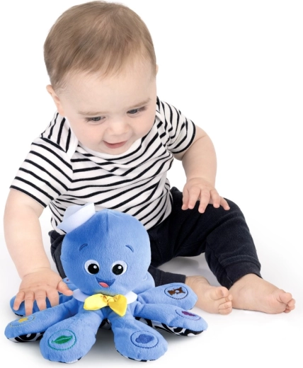 Datorită comutării între engleză, spaniolă și franceză, copilul are primul contact cu limbile străine într-un mod ludic. Modelele contrastante de pe tentacule stimulează vederea, iar detaliile tactile întăresc motricitatea fină. Practicul control al volumului permite adaptarea jocului atât acasă, cât și în călătorii.