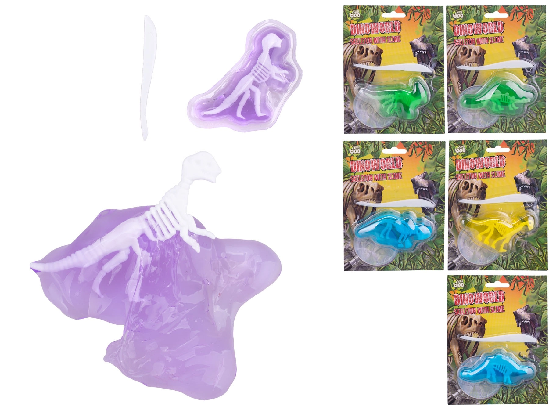 Descoperă o jucărie distractivă și educativă care îmbină lumea dinozaurilor cu jocul interactiv. Scheletul de dinozaur scufundat în slime îi va încânta pe micii paleontologi, care se vor bucura de excavare, curățare și asamblare. Fiecare pachet ascunde una dintre cele șase specii de dinozauri și dezvoltă motricitatea fină, creativitatea și răbdarea. Include și un instrument pentru manipulare ușoară.