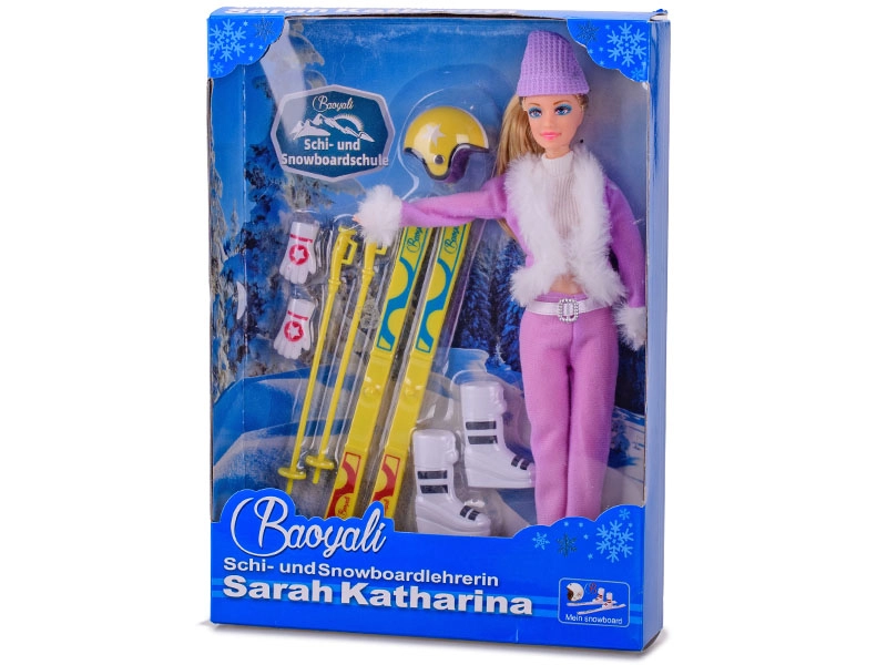 - Păpușă, schiuri, bețe, cască de schi, căciulă, mănuși, clăpari