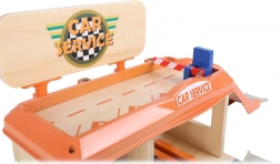 Această jucărie de lemn este ideală pentru mici pasionați de automobile. Service-ul auto și stația de alimentare aduc distracție pe două etaje și oferă și mai mult spațiu pentru explorare. Copiilor le vor plăcea elementele de design realist inclusiv rampa și parcarea cu barieră.