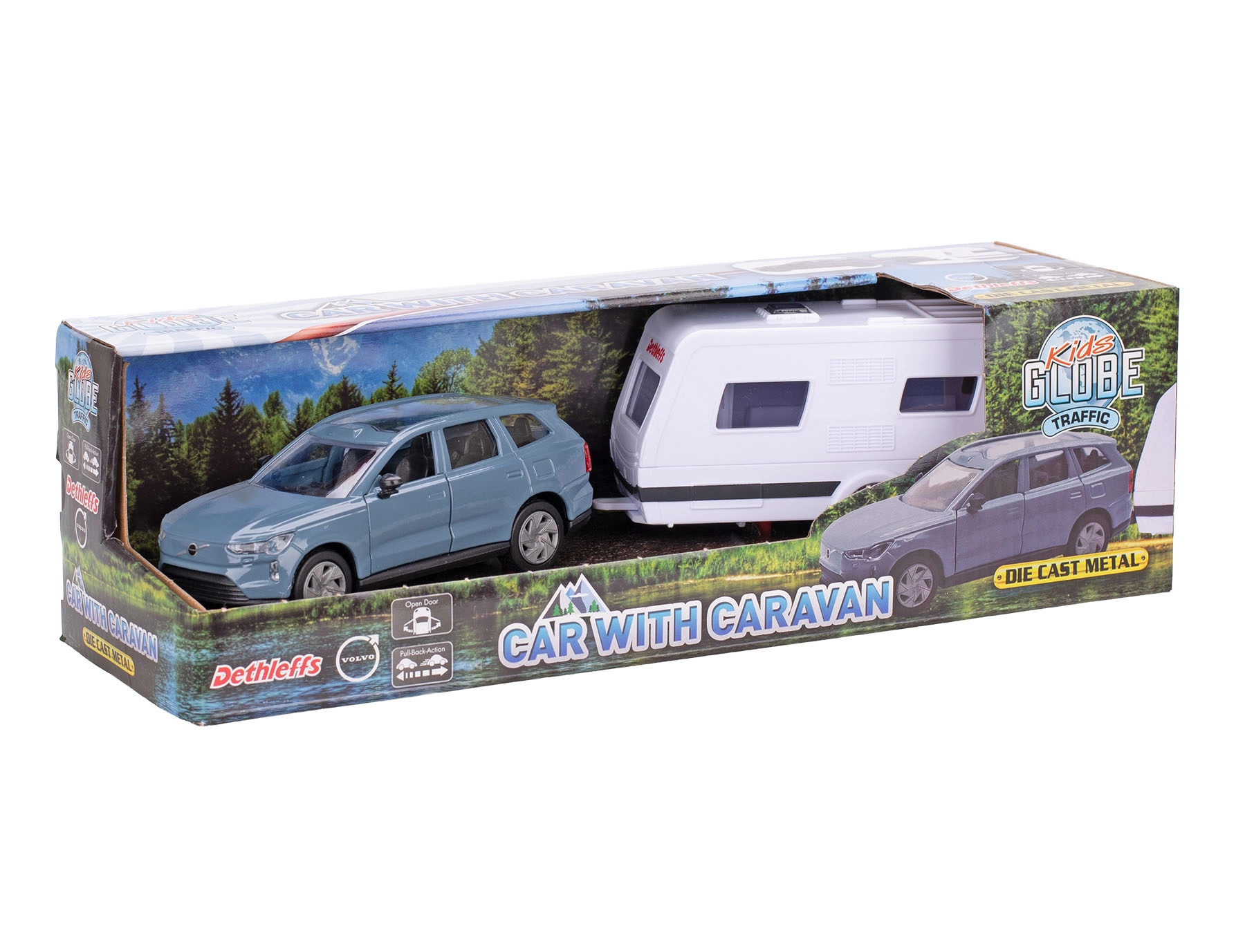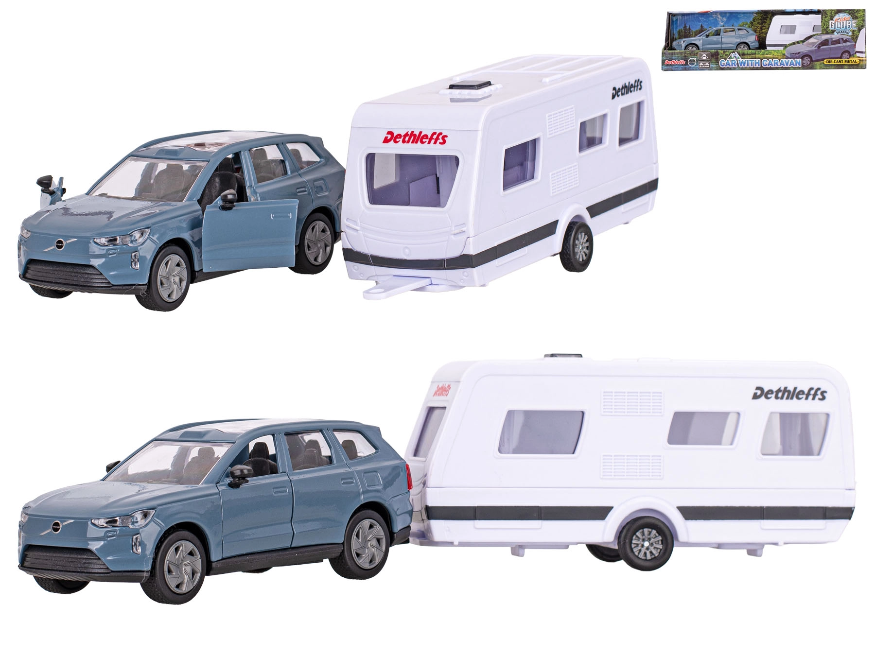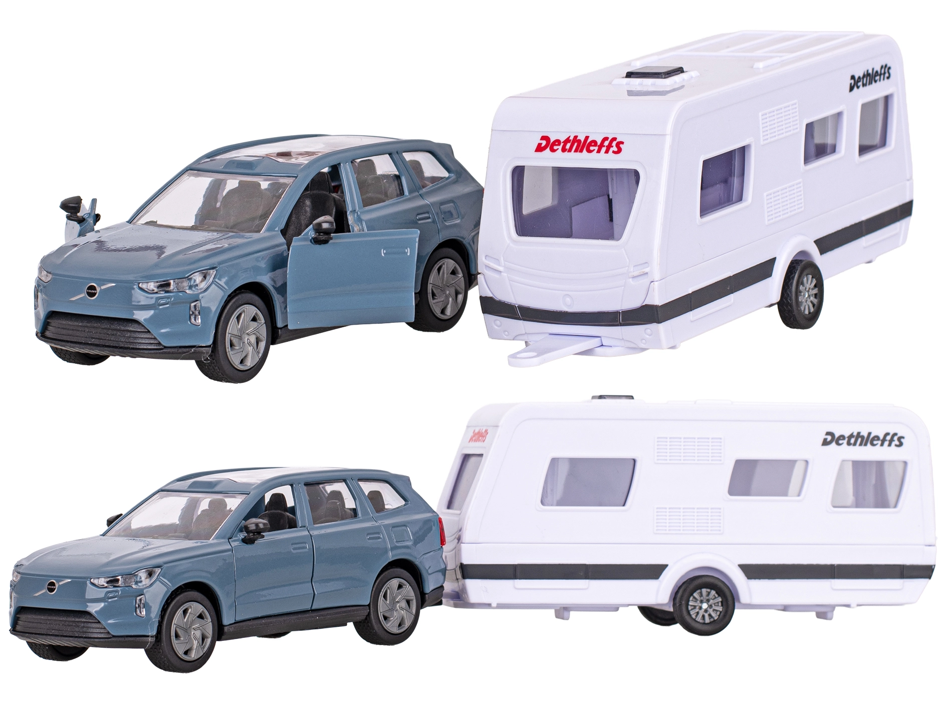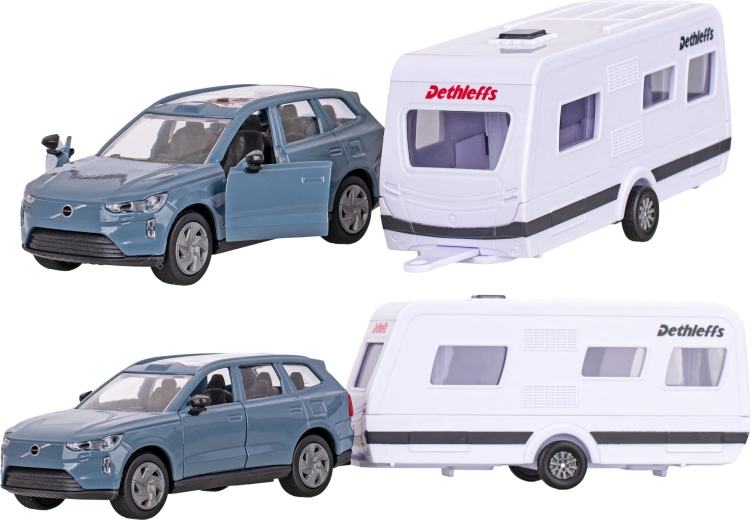 Descoperă modelul fidel Volvo EX90 cu rulotă Dethleffs, care impresionează prin detalii bine lucrate și calitate. Caroseria metalică cu elemente din plastic asigură durabilitate, în timp ce mecanismul de întoarcere (pull-back) oferă o experiență de condus dinamică și distractivă. Rulota detașabilă extinde posibilitățile de joacă și stimulează creativitatea copiilor.