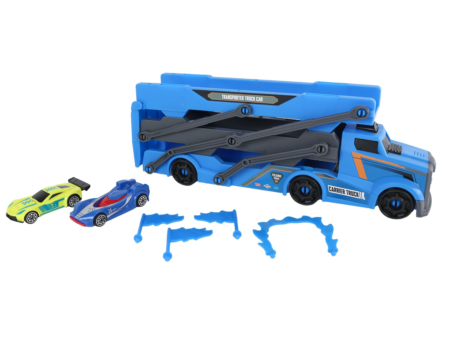 Pornește într-o aventură plină de acțiune cu camionul Roadblasters, care îmbină transportul mașinuțelor și cursele rapide într-o singură jucărie. Pur și simplu introduce una dintre mașinile incluse în lansatorul integrat și urmărește cum pornește pe traseu. Datorită funcționării libere nu sunt necesare baterii – distracția poate dura nelimitat.