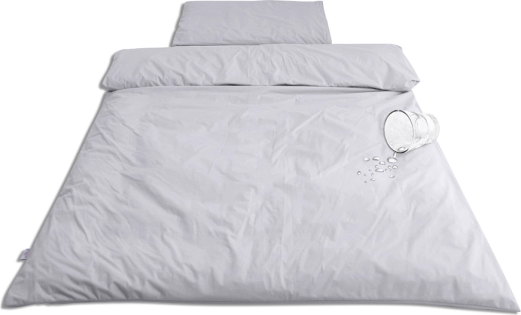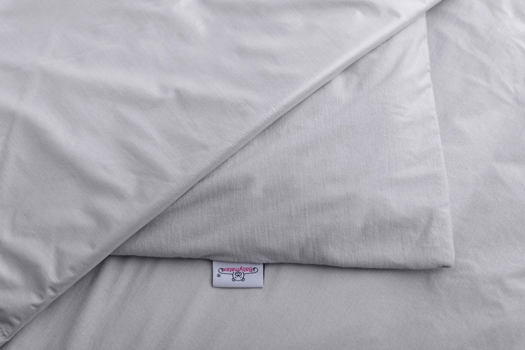 Lenjeria impermeabilă din bambus BABYMATEX în culoare gri este concepută special pentru bebeluși și copii mici. Strat superior din 100% viscoză de bambus, extrem de fin, în mod natural hipoalergenic și antibacterian, în timp ce membrana PU de la bază protejează umplutura împotriva umidității și murdăriei. Construcția respirabilă asigură o circulație plăcută a aerului și confort pe tot parcursul nopții.