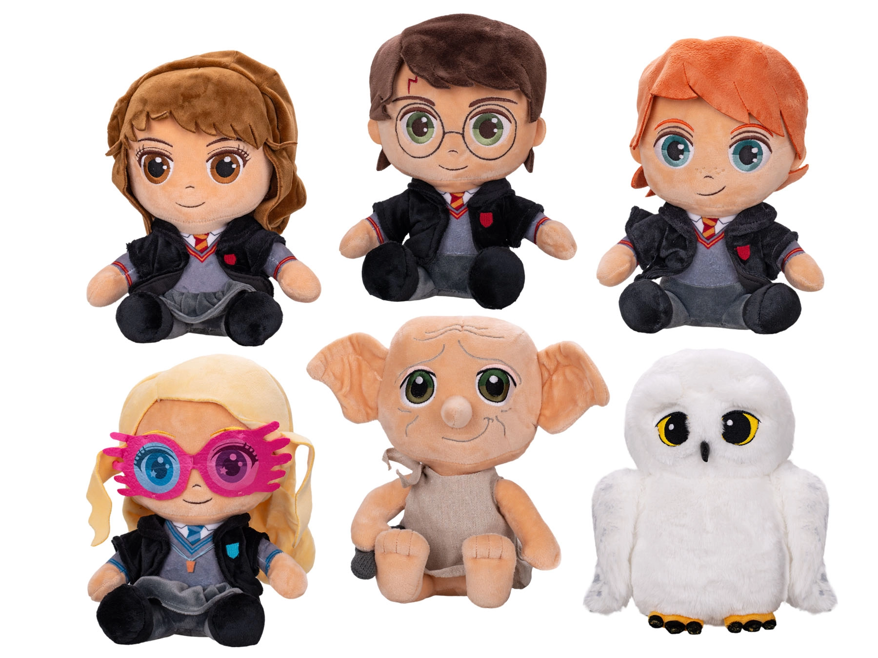 Descoperă magia lumii HARRY POTTER cu adorabila colecție de plușuri așezate, cu dimensiunea de 25 cm. Fiecare figurină este realizată din pluș moale, plăcut la atingere și sigur pentru copii încă de la naștere. Poți alege dintre personajele îndrăgite: Harry Potter, Hermione Granger, Ron Weasley, Luna Lovegood, Dobby și bufnița Hedwig – un cadou ideal pentru fanii mici și mari ai Hogwartsului.