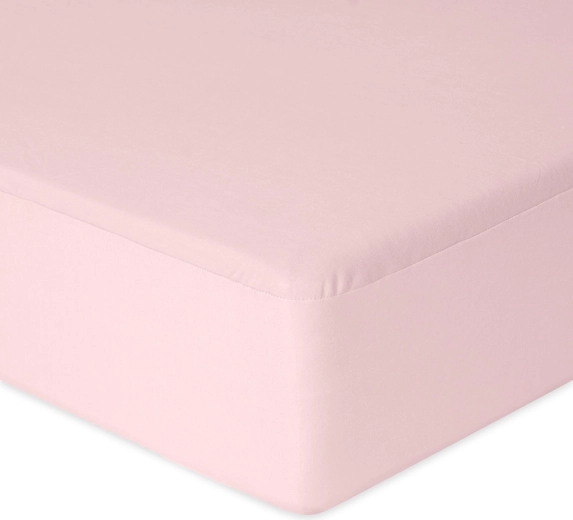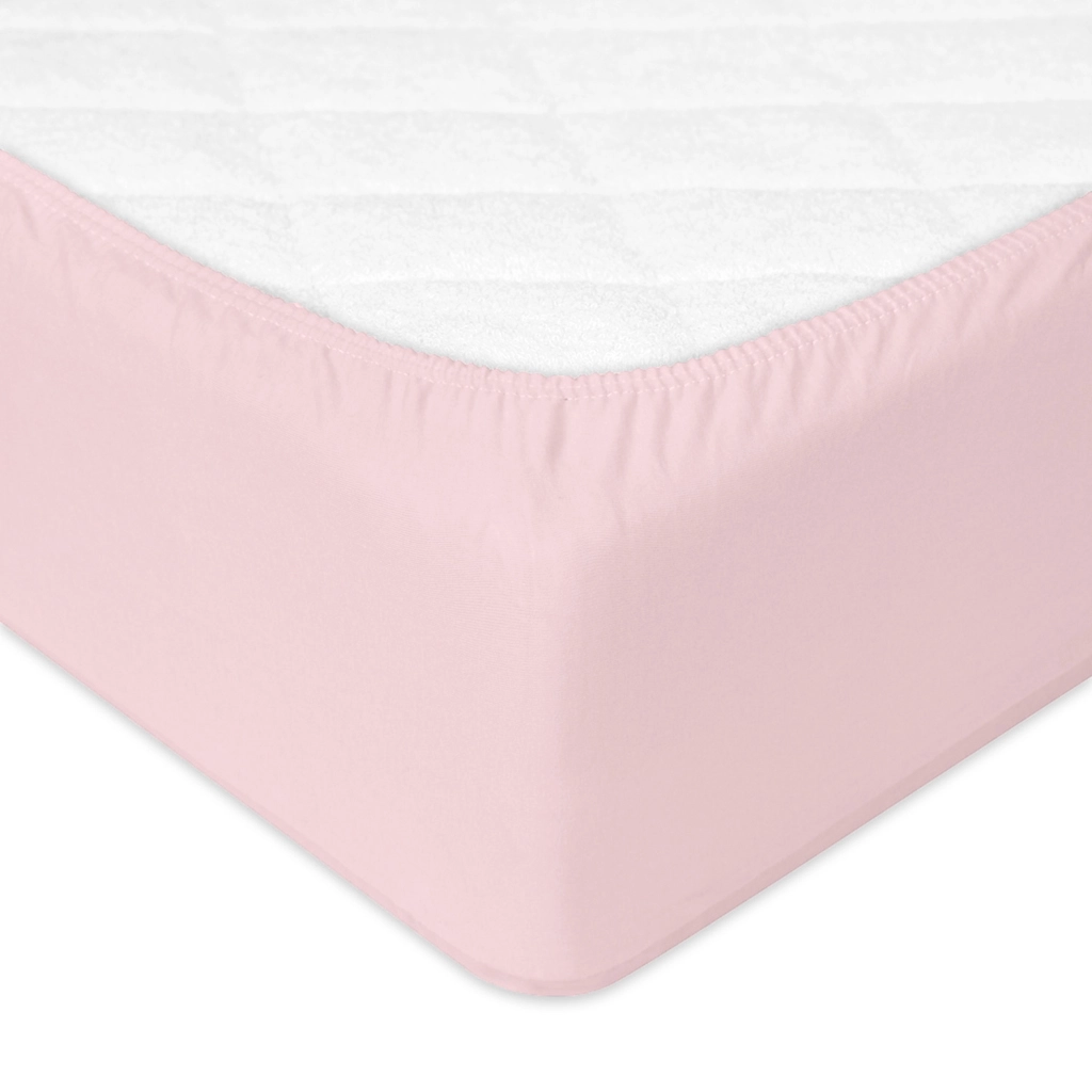 Cearșaf practic și moale pentru pătuț de 60 × 120 cm, în nuanță delicată de roz. Datorită canalului cu elastic, cearșaful stă ferm pe saltea și nu se adună, în timp ce stratul inferior impermeabil protejează salteaua împotriva umezelii. Partea superioară din bumbac 100% fin este blândă cu pielea sensibilă a copiilor.