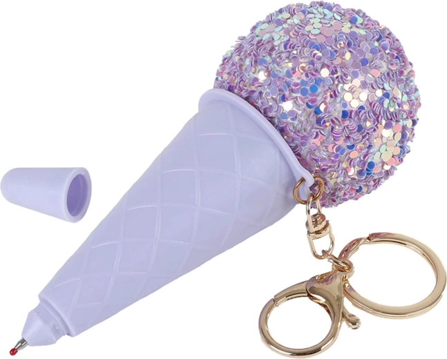 Îmbogățește-ți stilul zilnic cu un accesoriu original: breloc pentru chei în formă de înghețată cu pix integrat. Ușor, rezistent și mereu la îndemână – ideal pentru notițe în mișcare și ca decorațiune drăguță. Aspectul mov sclipitor adaugă un plus de șarm cheilor, rucsacului sau genții tale.