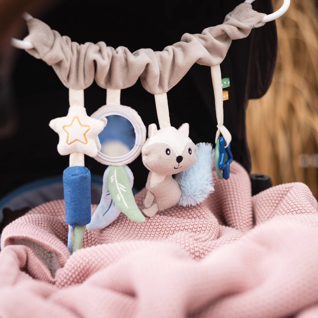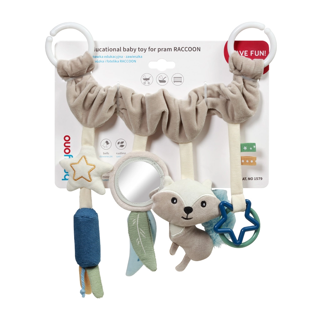 Bara BABYONO Raccoon oferă bebelușului o stimulare senzorială variată în timpul plimbărilor și călătoriilor. Datorită prinderii universale, o fixați ușor pe cărucior, scaun auto și pătuț. Materialele moi sunt delicate cu pielea copilului, iar designul sigur susține dezvoltarea vizuală și tactilă.
