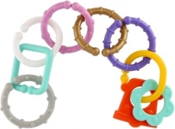 Acest set de inele și forme colorate este conceput pentru cei mai mici. Datorită culorilor, formelor și texturilor variate, copiii își dezvoltă în mod natural percepția senzorială și coordonarea mână–ochi. Piesele individuale se conectează ușor și țin ferm, astfel încât copiii își pot crea propriile lanțuri sau pot atașa jucările de cărucior ori de scaunul auto.