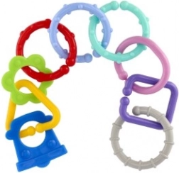 Inelele și formele se conectează simplu și rămân împreună, astfel încât copiii pot crea lanțuri și pot atașa jucării la cărucior sau la scaunul auto.