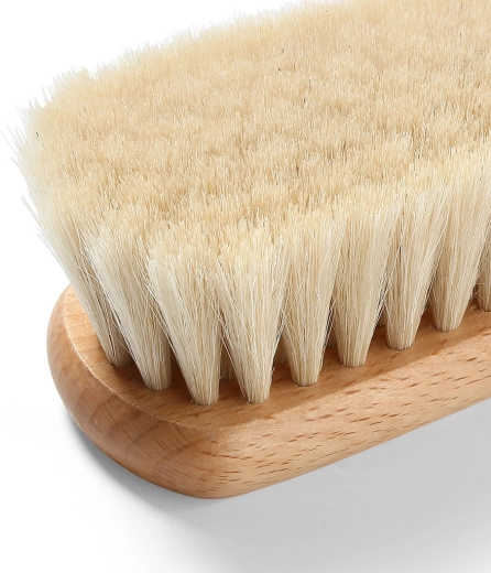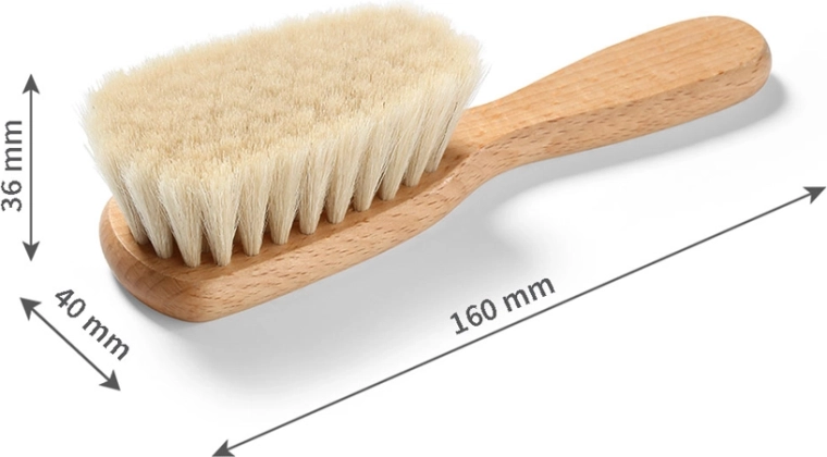 Această perie naturală este concepută pentru cea mai delicată îngrijire a nou-născuților și sugarilor. Perii deși și moi din păr de capră sunt extrem de blânzi cu pielea sensibilă, reduc riscul de iritații și ajută la liniștirea bebelușului printr-un masaj plăcut. Cadrul din lemn de fag certificat asigură rezistență și durată de viață îndelungată, menținând caracterul 100% natural al produsului.