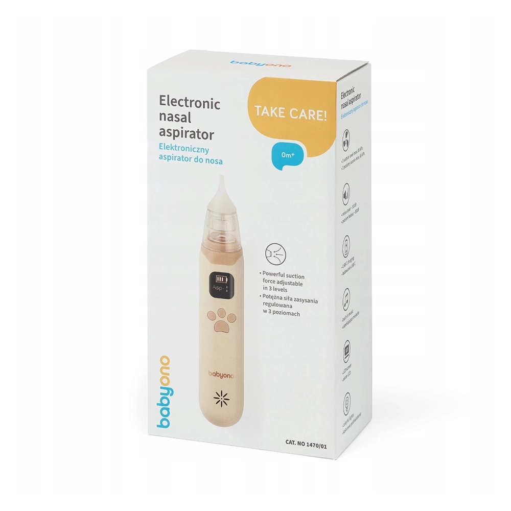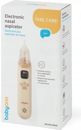 Aspiratorul BABYONO, practic și ergonomic, este conceput pentru curățarea rapidă și sigură a cavității nazale a copiilor. Trei moduri de putere, până la 65 kPa, se adaptează vârstei și tipului de secreții, în timp ce nivelul redus de zgomot, aproximativ 50 dB, nu perturbă somnul. Ecranul LCD clar indică nivelul bateriei și modul selectat, astfel încât aveți totul sub control.