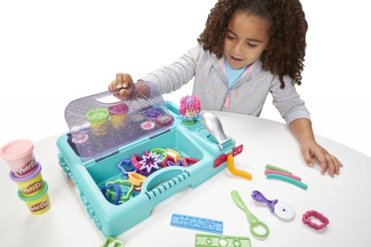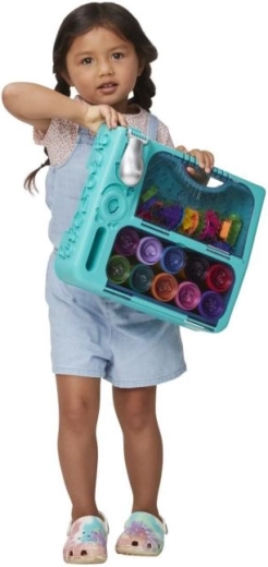 În acest set universal pentru călătorii îi așteaptă pe copii o mulțime de accesorii și clasicele borcănașe Play-Doh cu plastilină! Vei găsi aici Fabrica Distracției și Frizeria, o mulțime de forme de decupat și tot felul de șmecherii, așa că nu te teme să-ți lași imaginația liberă. Există o mulțime de spațiu pentru toate: borcănașele cu plastilină pot fi puse în orificiile pregătite, uneltele și formele de decupat în compartimentul de depozitare, pe al cărui capac cu textură te poți distra creând modele grozave. Întregul pachet este practic: încape tot ce ai nevoie și, datorită mânerului compact, îl poți lua comod cu tine în călătorii, pentru a-ți face weekendul mai distractiv, de exemplu la bunica!