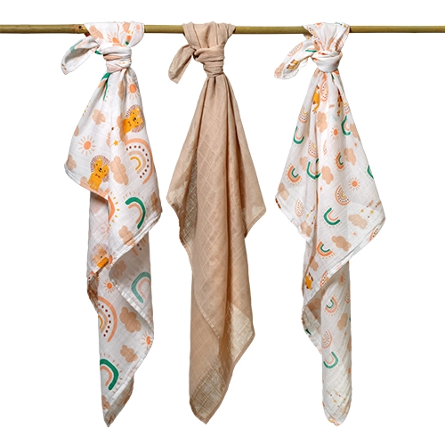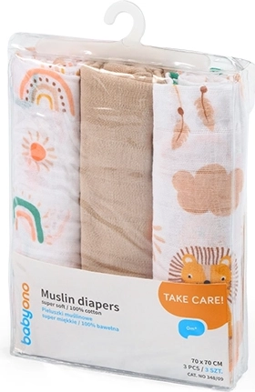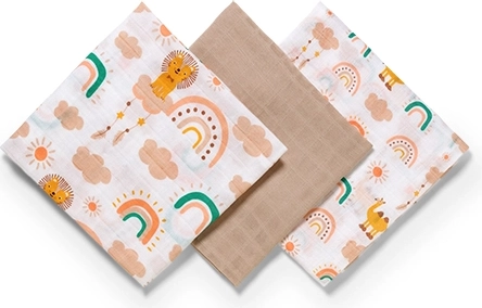 Scutecele din muselină, din 100% bumbac, sunt extrem de fine, foarte respirabile și blânde cu pielea sensibilă a bebelușului. Utilizare universală din prima zi – pentru înfășat, acoperit, alăptare și ca cearșaf sau prosop. Set practic de 3 bucăți cu dimensiunea de 70 × 70 cm.