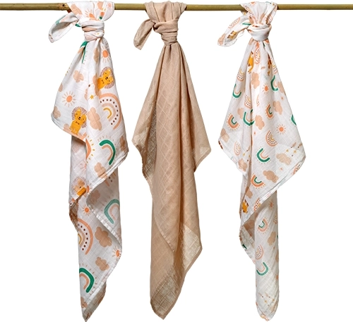 Materialul din 100% bumbac nu irită pielea sensibilă, se spală ușor și se usucă rapid. Setul include 3 bucăți în culori și imprimeuri discrete, care se potrivesc perfect cu trusoul. Scutecele sunt ideale pentru maternitate, călătorii și îngrijirea zilnică a bebelușului.