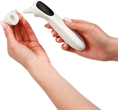- Accesorii practice în pachet: săculeț pentru termometru, baterii, manual