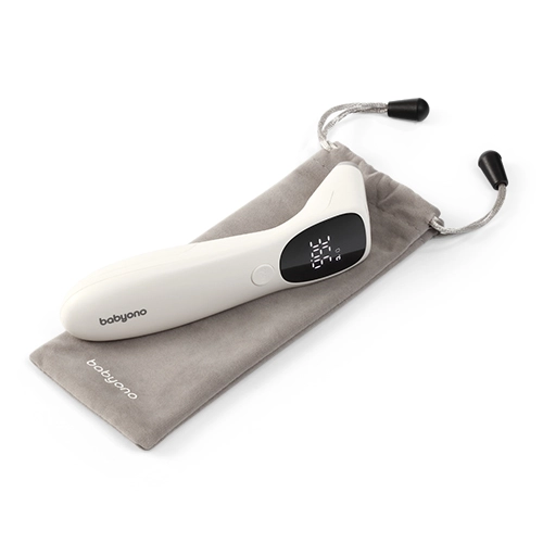 Termometrul fără contact BABYONO, rapid și precis, pentru măsurare de pe frunte și din ureche, oferă rezultatul în 1 secundă. Datorită alarmei silențioase prin vibrații și luminii LED, puteți verifica temperatura chiar și în timpul somnului copilului. Ecranul LED clar, memoria pentru 32 de măsurători și opțiunea °C/°F îl fac un ajutor de încredere pentru întreaga familie.