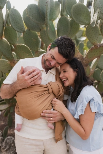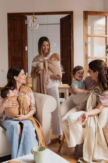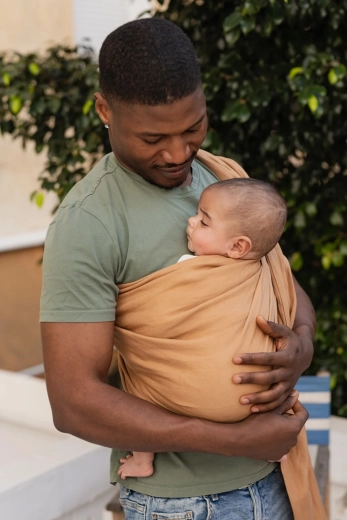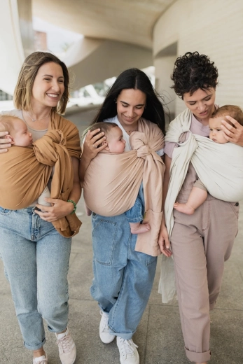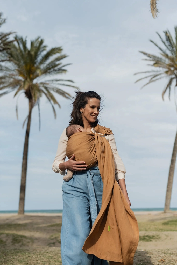 Materialul respirabil ajută la reglarea temperaturii, banda lată de material distribuie greutatea, iar inelele metalice asigură strângere precisă și sigură. Copilul are din brațele tale un câmp vizual de 360°, rămânând în același timp în poziție ergonomică, cu susținerea corectă a bazinului, spatelui și capului. Eșarfa este ideală pentru plimbări zilnice, călătorii și adormit.