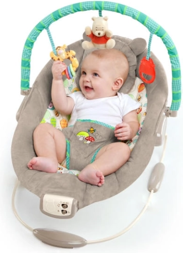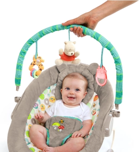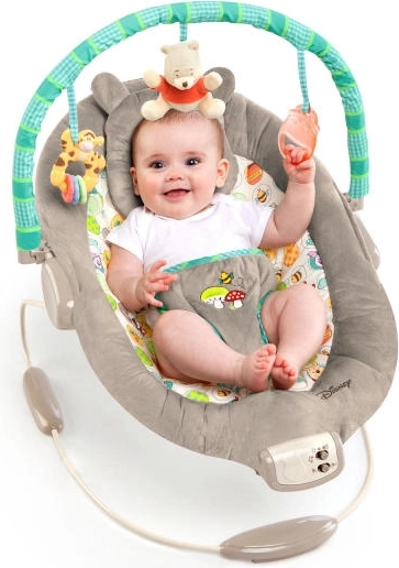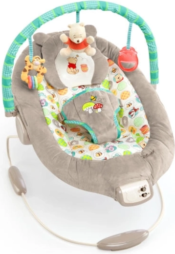 Oferiți bebelușului confort și liniște cu șezlongul DISNEY Baby de la Bright Starts. Oferă vibrații delicate, 7 melodii liniștitoare cu reglarea volumului și căptușeală moale, luxoasă pentru confort maxim. Bară de jucării detașabilă cu 3 jucării (Ursulețul Winnie din pluș, Tigru cu inele și cană cu miere) care stimulează simțurile și distrează. Siguranța este asigurată de centura reglabilă în 3 puncte și picioare antiderapante.
