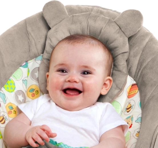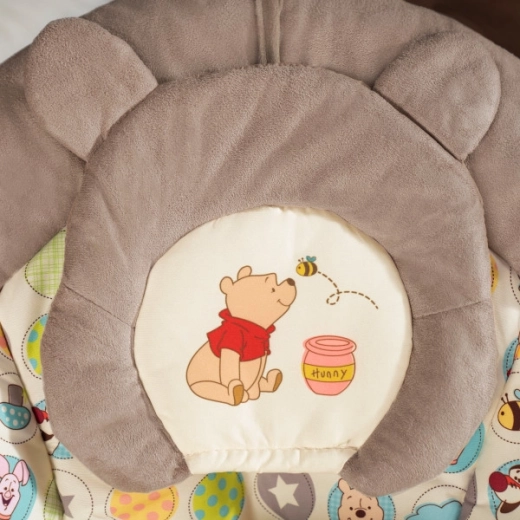 Șezlongul WINNIE THE POOH Dots & Hunny este creat pentru momente liniștite și stimulare jucăușă încă de la naștere. Căptușeala pufoasă din imitație de velur și pernița de susținere a capului detașabilă oferă sprijin și confort, în timp ce vibrațiile și melodiile ajută la calmare și la adormire mai ușoară.