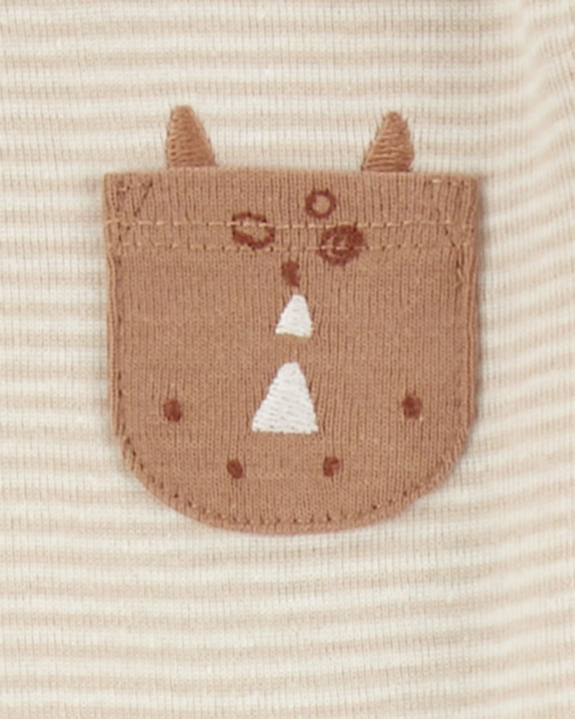 Practicul decolteu tip plic și capsele fără nichel dintre piciorușe grăbesc îmbrăcarea și schimbarea scutecului. Setul este livrat pe umeraș, fiind gata de folosit imediat sau ca opțiune de cadou pentru proaspeții părinți.