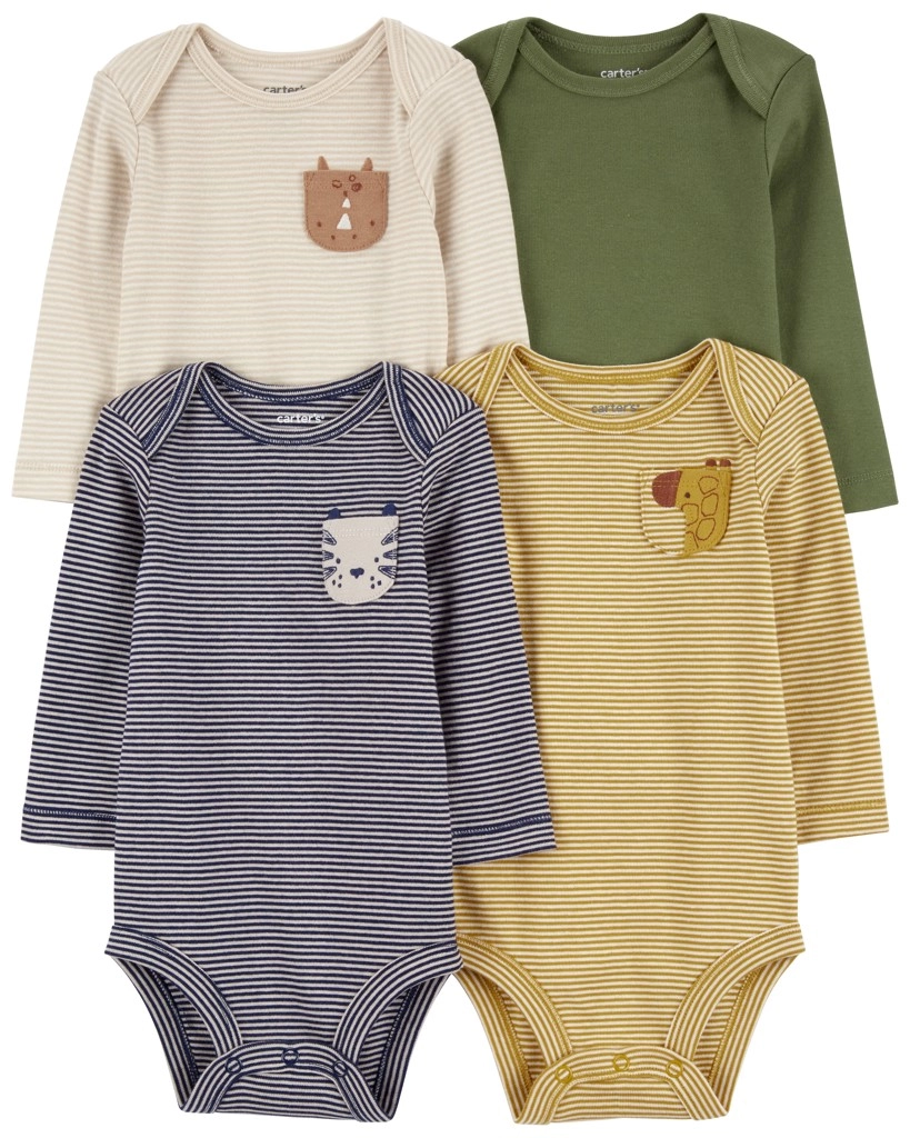 Setul de 4 body-uri cu mânecă lungă, în tonuri moderne de bleumarin și olive, cu motive vesele cu animale, este conceput pentru confort maxim al celor mici. 100% bumbac moale, respirabil și blând cu pielea sensibilă asigură confort pe tot parcursul zilei, în timp ce decolteul întărit și rezistent își păstrează forma chiar și după spălări frecvente.
