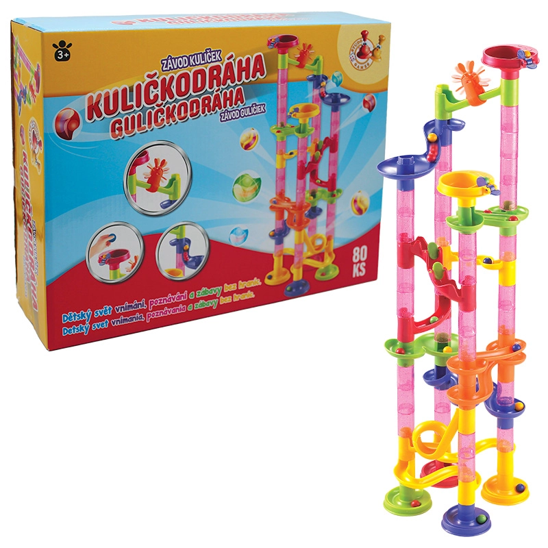 Pista cu bile STUDO GAMES 80 piese este un set de construcție distractiv și educativ, cu care copiii își proiectează propriile trasee sinuoase și urmăresc parcursul bilelor. În timpul construirii, experimentează cu forme și înălțimi diferite, dezvoltându-și în mod natural creativitatea, coordonarea mână–ochi și răbdarea.