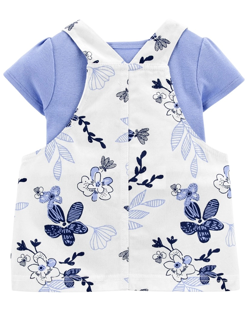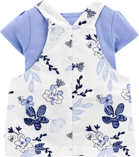 Set adorabil pentru fetițe, potrivit zilelor călduroase: body moale cu mânecă scurtă și rochiță lejeră cu bretele, cu model floral albastru. Datorită bumbacului 100% de calitate, ținuta este delicată cu pielea bebelușului, se îmbracă ușor și este maxim confortabilă la purtare. O alegere practică pentru trusou, care economisește timp la asortare.