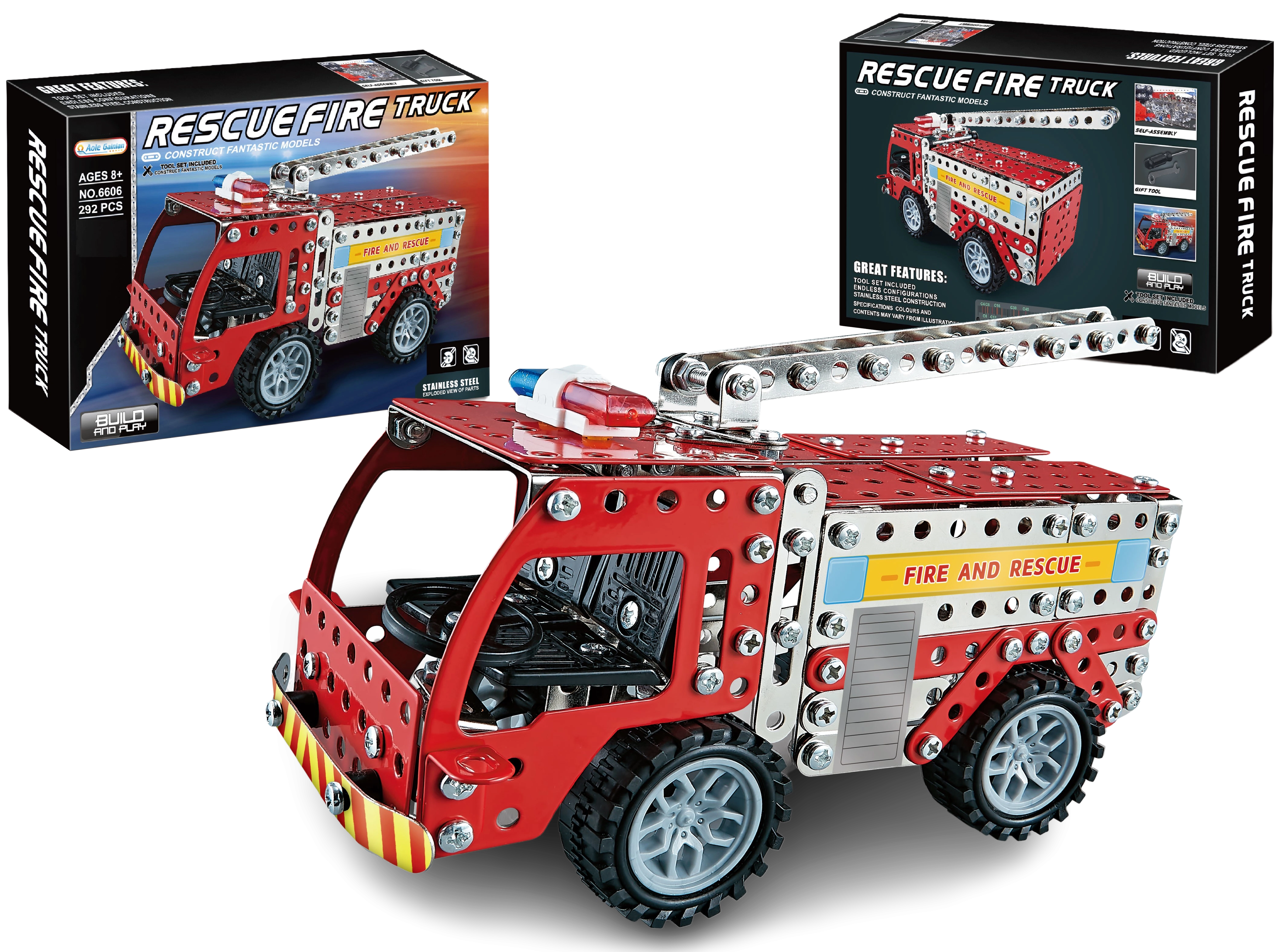 Acest set de construcție metalic, în stilul clasicelor seturi tip Merkur, le permite copiilor să construiască propria mașină de pompieri și apoi să se bucure de un joc creativ. Componentele de calitate, îmbinările solide și elementele realiste susțin răbdarea și precizia la asamblare.