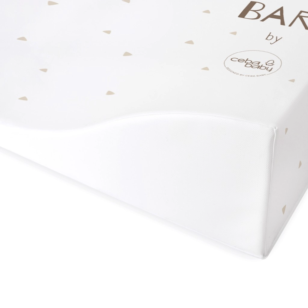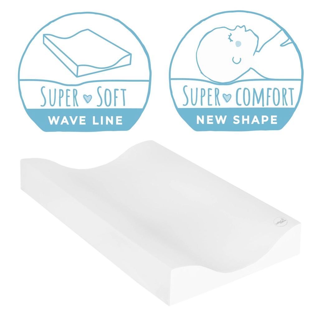 Această saltea de înfășat combină căptușeala moale pentru confortul maxim al bebelușului cu PVC-ul certificat și sigur, care este durabil, igienic și blând cu pielea sensibilă a copiilor. Cele două margini înălțate ajută la menținerea copilului în centrul saltelei și contribuie la o înfășare mai sigură.