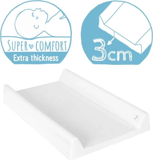 Salteluța de înfășat Ceba Baby Comfort este concepută pentru îngrijirea zilnică a nou-născuților și sugarilor. Două margini laterale sporesc senzația de siguranță, placa rigidă asigură stabilitate pe pătuț, iar umplutura moale, cu grosime de până la 3 cm, oferă bebelușului un confort real. Folia de suprafață este certificată, nu conține ftalați și este blândă cu pielea copiilor.