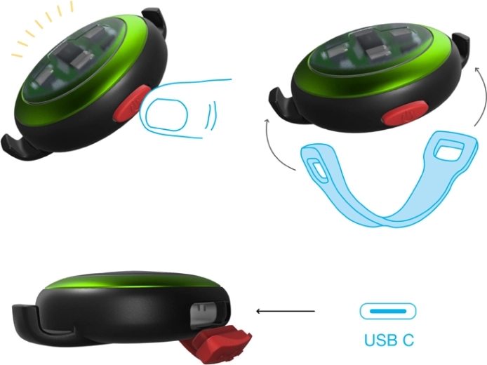 Prinde lumina de guler, rucsac, cărucior sau îmbrăcăminte sport și fii vizibil la alergare, mers pe jos sau pe drumul spre casă.