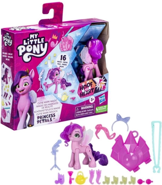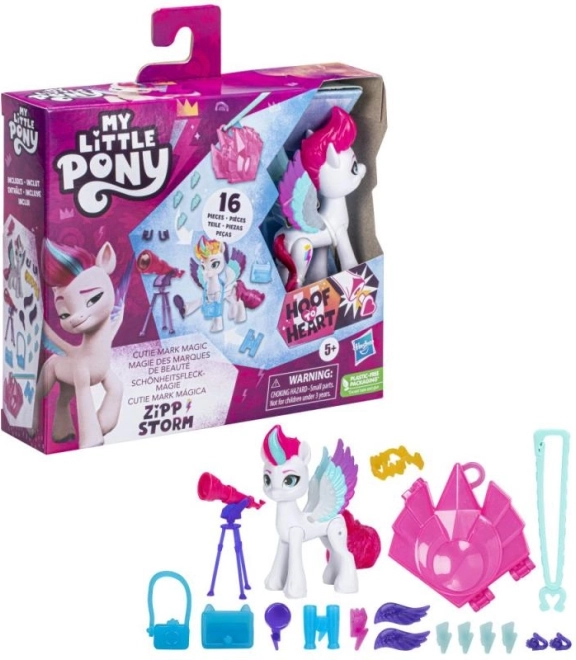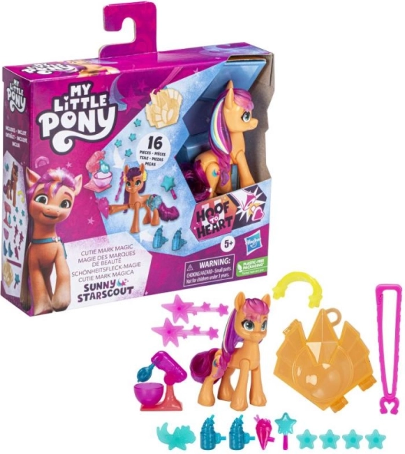 Setul My Little Pony Cutie Mark Magic aduce copiilor joacă creativă, în care pot dezvălui și schimba simbolurile magice Cutie Mark. Atașează amulete și talismanuri la stilatul breloc al unității, decorează coama poneiului și descoperă combinații noi. Poneiul poziționabil de 8 cm permite crearea de scenete și povești ca în serial.
