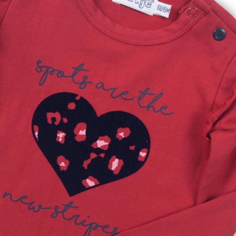 Căutați un tricou confortabil și totodată stilat pentru micuța fashionistă? Tricoul pentru fete DIRKJE în culoarea roșie oferă un material moale și suplu, cu adaos de elastan, pentru libertate de mișcare pe tot parcursul zilei. Volănașele elegante și inimioara discretă conferă ținutei o notă delicată și jucăușă.