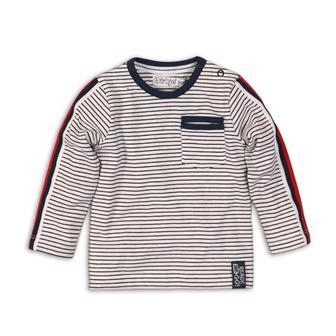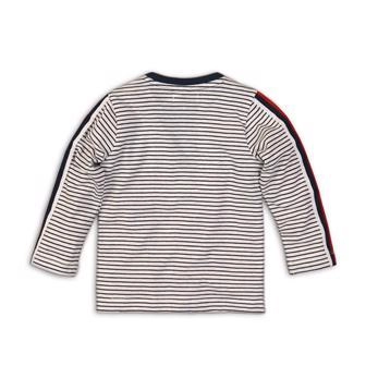 Tricou pentru copii cu mânecă lungă de la DIRKJE, în dungi alb‑bleumarin, oferă confort pentru purtare zilnică, material moale cu bumbac și buzunăraș practic pe piept. Datorită mânecilor lungi și tricotului plăcut, este ideal atât pentru joacă întreaga zi, cât și pentru grădiniță.