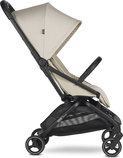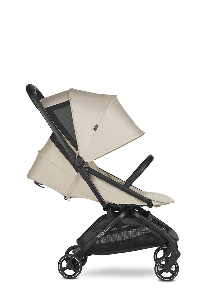 Căruciorul este compatibil cu landou și cu scaun auto (cu adaptoare), acoperind astfel întregul interval de la naștere. Suspensia pe toate cele patru roți cu frână avansată și indicator de siguranță integrat asigură o deplasare lină și stabilă. Capotina mare cu ventilație laterală protejează copilul în orice anotimp, în timp ce coșul încăpător găzduiește tot ce este necesar pentru drum.