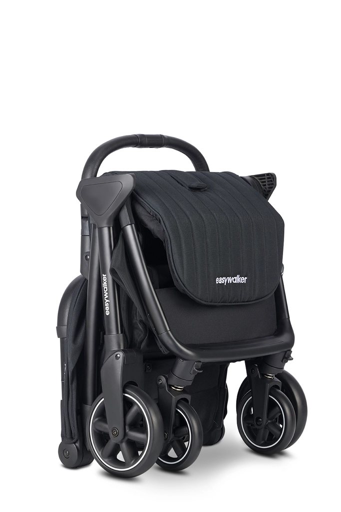 Căruciorul Easywalker Jackey2, ușor și compact, în eleganta culoare Midnight Black, este ideal pentru deplasările zilnice prin oraș și pentru călătorii. Oferă pliare automată în 1 secundă, suspensie pe toate roțile, capacitate de încărcare a copilului până la 22 kg și poziție de la complet verticală până la total înclinată pentru confort și postură sănătoasă. Țesătura premium sustenabilă din PET reciclat este rezistentă și plăcută la atingere.