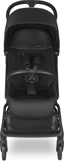 De la naștere îl puteți folosi cu landou sau scaun auto (cu ajutorul adaptoarelor). Echiparea practică include centură în 5 puncte, bară de protecție rotativă și detașabilă, suport pentru picioare reglabil, supensie pe toate cele patru roți cu frână avansată și coș spațios până la 7 kg. Țesăturile premium din plastice reciclate sunt ușor de întreținut, iar șezutul cu inserție poate fi scos și spălat simplu.