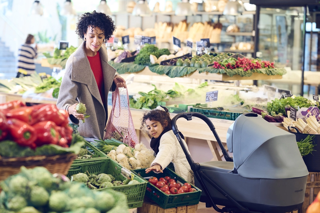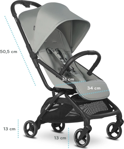 Materialele de calitate premium sunt realizate din plastice reciclate, husele se întrețin ușor, iar inserția scaunului este detasabilă și lavabilă. Căruciorul este compatibil cu landou și cu scăunel auto (cu ajutorul adaptoarelor), astfel îl poți folosi din prima zi. Coșul de cumpărături practic, mânerul înalt, bara pivotantă și suportul de picioare reglabil completează confortul zilnic.
