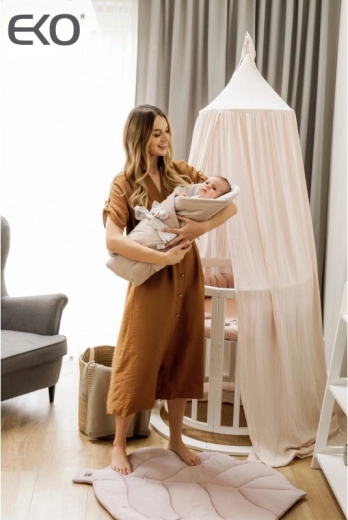 Creați-i micuțului un mediu primitor și sigur. Baldachinul din muselină în culoarea Rose Pink este ușor, aerat și lasă să treacă frumos lumina difuză. Îndulcește lumina naturală și artificială și ajută la reducerea stimulilor vizuali, pentru ca bebelușul să se liniștească și să adoarmă mai ușor.