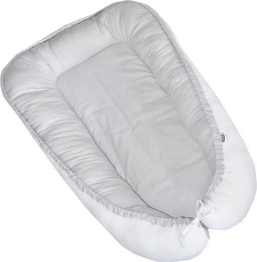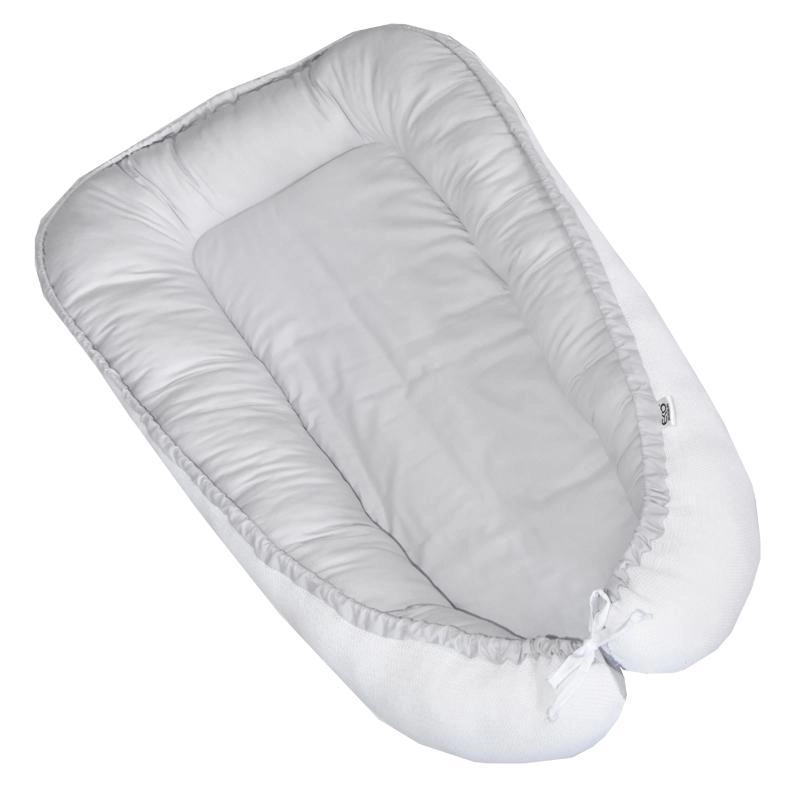 Cuibul pentru copii Eco White-Grey, cu două fețe, este o alternativă excelentă la păturici și înfășători. Oferă bebelușului confort, siguranță și senzația de apropiere datorită spațiului redus și umpluturii moi. Marginile înalte ajută la menținerea copilului într-o poziție sigură și facilitează poziționarea pe o parte, lucru pe care îl veți aprecia mai ales în caz de reflux.
