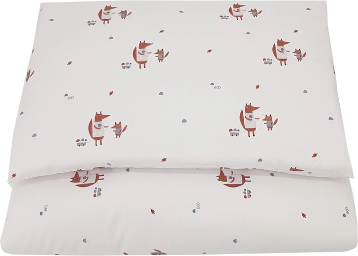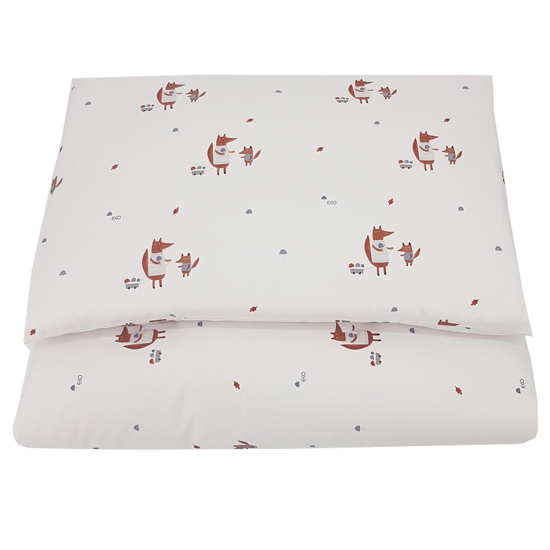 Lenjerie de pat pentru copii, adorabilă, cu motiv vulpi, din 100% bumbacmoale, respirabil și confortabil. Setul include o husă pentru pilotă de 90 × 120 cm și o husă pentru pernă de 40 × 60 cm, ideal pentru pătuțul copiilor.