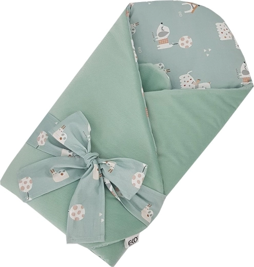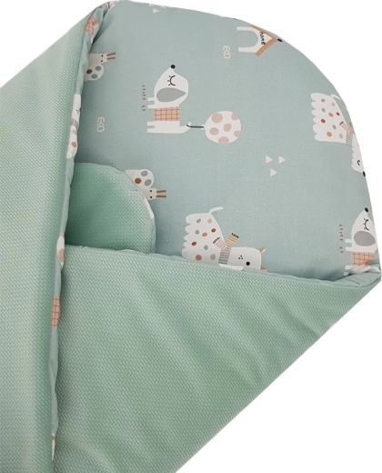 Înfășătoare moale și sigură pentru bebeluși, din combinație de bumbac de calitate și material catifelat VELVET, umplută cu fibră hipoalergenică. Conține inserție de cocos detașabilă pentru o susținere mai fermă a nou-născutului în primele săptămâni. Înfășătoarea oferă căldură, confort și sprijin, are închidere cu arici și o fundiță decorativă în designul Dogs Mint.